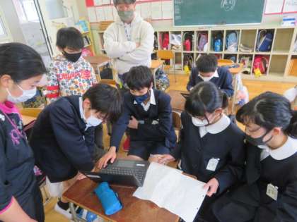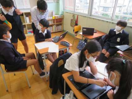 「町の幸福論」で、各グループ別にプレゼンテーションする内容を確認したり、説明資料を補足したりしていました。