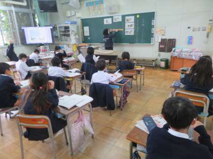 「お手紙」で、1・2組とも「場面ごとに話をせいりしよう」というめあてで、それぞれに学習を進めていました。
