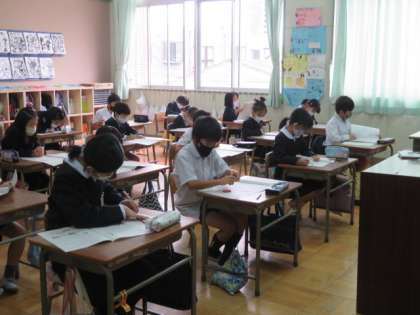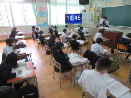 3年生も、各学級教室で集中してテストに取り組んでいます。