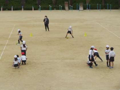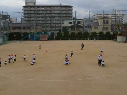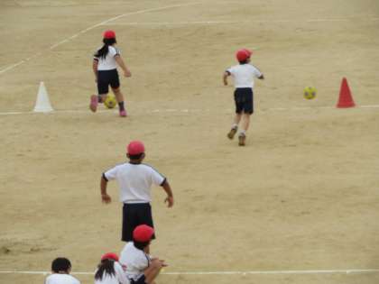 2時間目終わりから使えるようになった運動場で、のびのびと体を動かしていました。
