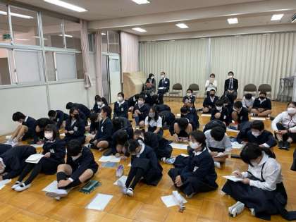 各発表後には、聴いていた子どもたちが発表について発表者の主張、スライドの構成、資料の活用の項目に分けて記入するワークシートに気が付いたことを書きこんでいました。