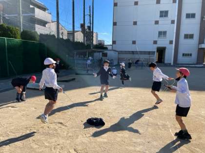 気温が下がりましたが、天気がよいので運動場で遊ぶ子どもたちでいっぱいでした。
