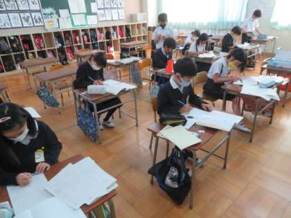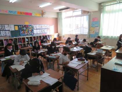 2学期の学習のまとめを、3教室に分かれてそれぞれの教室で取り組んでいました。