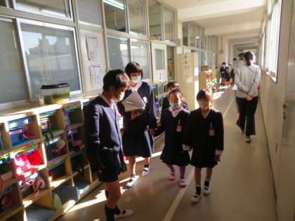 初めに6年生児童が、1年生児童を迎えに行きました。