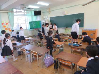 各集団登校班ごとに地域別で決められた教室に集まって、地域子ども会を行いました。