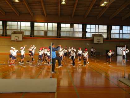 走り高跳びの基本となる動きについて確認したり、準備補強的な運動をしたりしていました。
