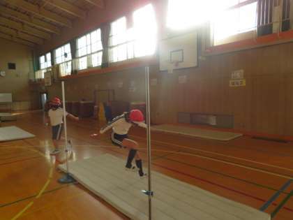 その後、試し跳びを自分の目標記録に合わせた場に分かれてしていました。