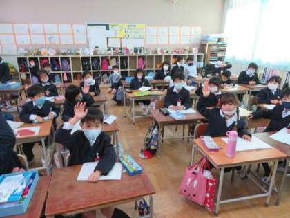 今朝の児童集会は、個人懇談会にともなう時間割変更もあり、短縮バージョンで職員室からの放送で行いました。