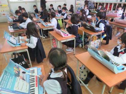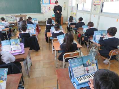 鍵盤ハーモニカで「キラキラぼし」を演奏していました。