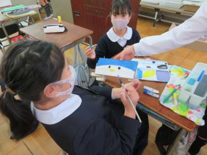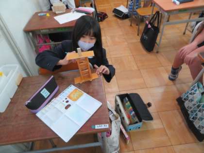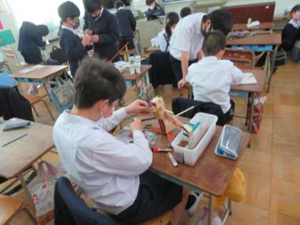 「ギコギコトントン」の教材に、 1組は教室で、2組は図工室でそれぞれに取り組んでいました。