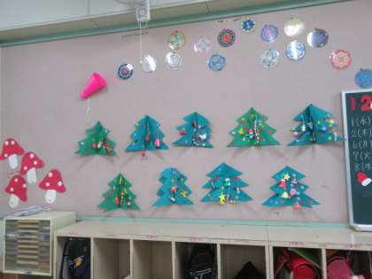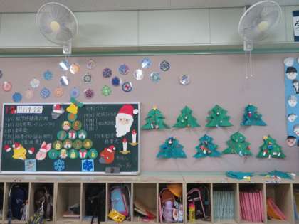 クリスマスツリーなど楽しく落ち着いた教室環境で、給食をしっかりといただいていました。