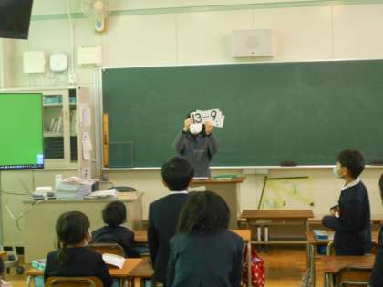 繰り下がりのあるひき算の計算カードにチャレンジしていました。
