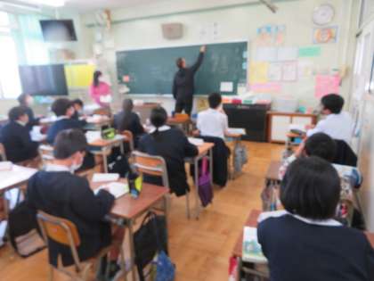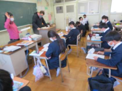 C-NETの先生と担任が一緒に英語の指導をしていました。