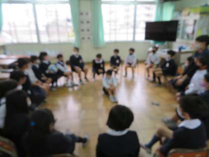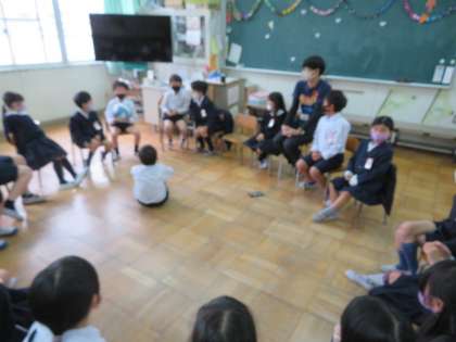 お楽しみ会で、みんなで仲良く担当の子どもが考えたゲームを楽しんでいました。