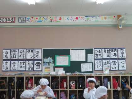 2学期最後の給食もしっかりと準備を整えて、よく味わいながらしっかりといただいていました。