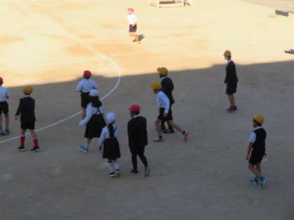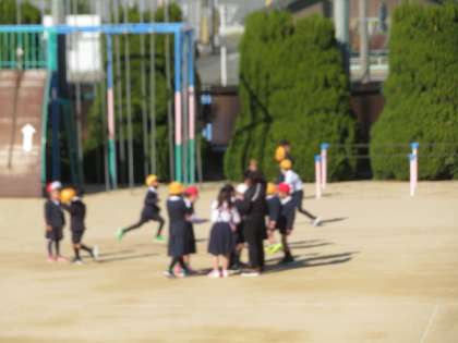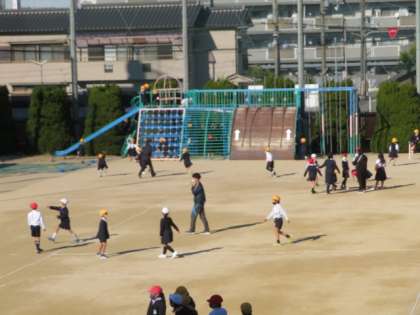 子どもたちといっしょに先生も運動場へ出て合運動遊びを楽しんでいました。