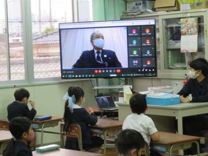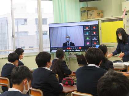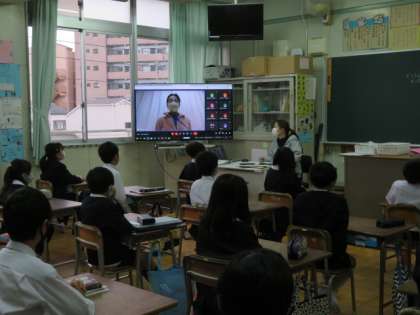 各教室とも、大型モニターの画面を観ながらの始業式でした。