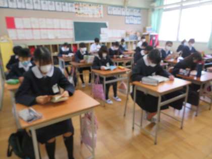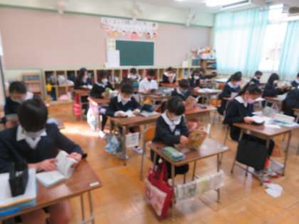 8時30分前に校内放送の案内があり、全校で読書タイムに取り組んでいます。