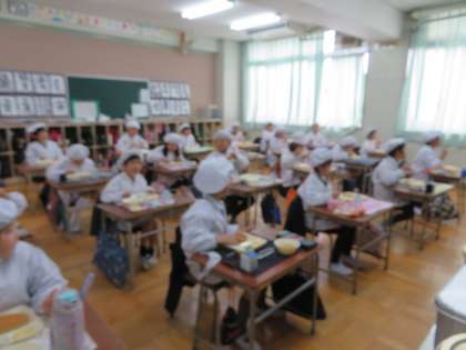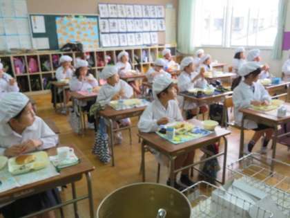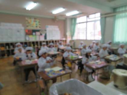3学期初めての給食をおいしそうにいただいています。