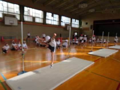 1・2組が合同で、「走り高跳び」にチャレンジしていました。