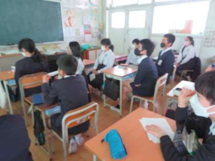 阪神淡路大震災のことと「いじめについて考える日」の取り組みを重ね、ワークシートに記録したりして一人ひとりが自分のこと周りの人のこと、その関わりの意味等について考える指導を展開していました。