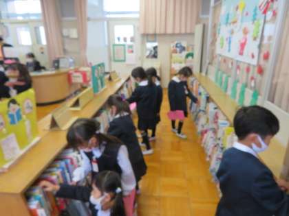 2時間目の前半は1年1組が、後半は1年2組が図書室を利用していました。