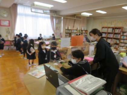 図書室の本をしっかりと選んで、貸し出し手続きをきちんと行っていました。
