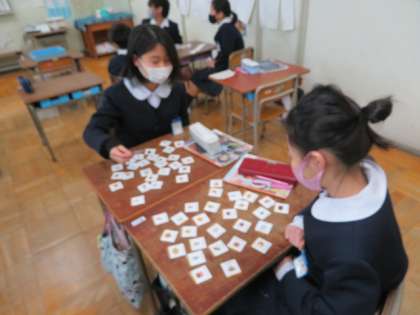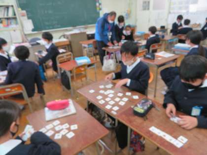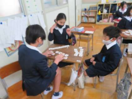 "What would you like ? "と訊かれたことをカードとともに " I'd like ○○○. "と英語で答える活動をしていました。