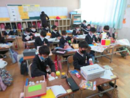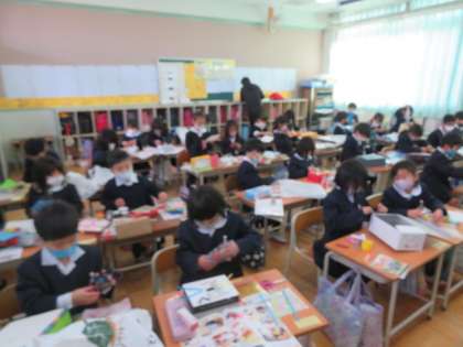 1/19 水 2時間目 1年1組 図画工作