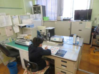 3つのグレードを希望で受検するので人数差があり、職員室、学習室、学級教室の2教室の4か所に分かれて行いました。