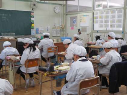 2組の子どもたちは、いつも担任からの本の読み聞かせを聴きながら、静かにしっかりと給食をいただいています。
