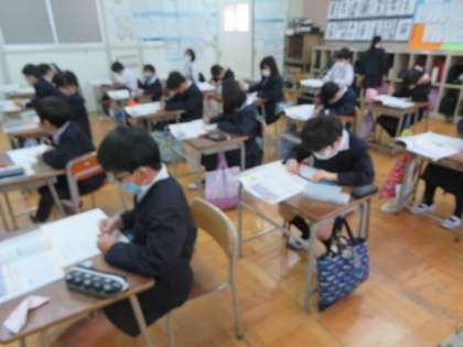 「身の回りの環境」で、部屋の明るさなど目の健康に関わることについて気づいたことをいろいろと発表し合い、まとめていました。