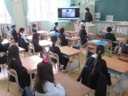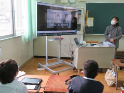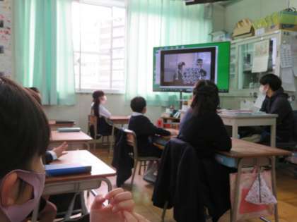 給食週間特別企画で、各教室ではTドライブを使って給食委員会が作成した動画を視聴しました。