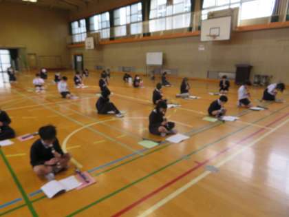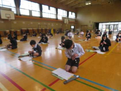 広い講堂でディスタンスをとったり、窓や扉を開けて換気を図ったりするなど、十分に感染予防対策をしながらリコーダーの練習をしていました。