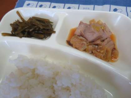 給食の茎わかめの佃煮は、しっかりと味がついておりコリコリとした食感を楽しみながらごはんとともにとてもおいしくいただきました。