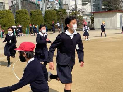 2/9 水 昼の時間 運動場で遊ぶ子どもたち