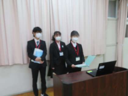 校長からの話に続いて、今日から18日まで栄養士実習を予定している大阪市立大学の3名の学生からのあいさつがありました。