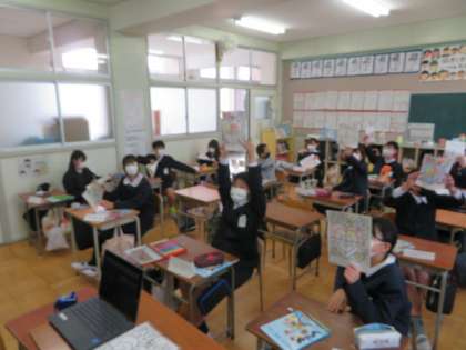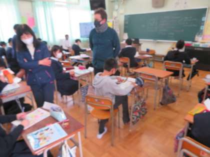 火曜日は、C-NETの先生と5・6年の担任がそれぞれの教室で一緒に英語の指導をしています。