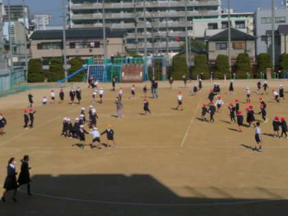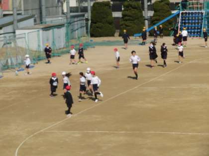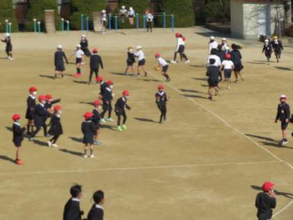 休み時間、運動場へ出て遊ぶ子どもたちです。