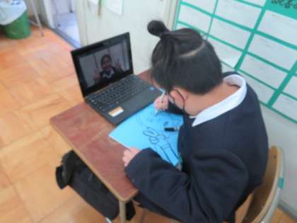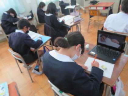 パソコンに撮りこんだ自分の上半身の写真をもとに、版木に直接下描きをしたりして彫り進めていました。