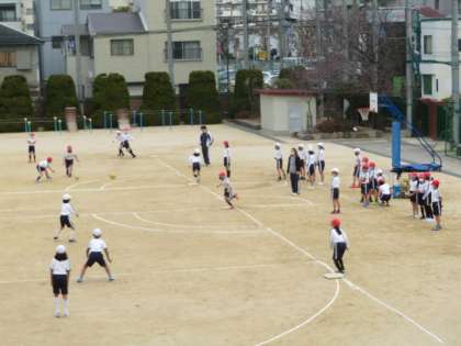 寒空のもとでしたが、歓声が運動場に響き、とても元気よくプレイを楽しんでいました。