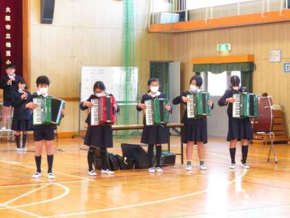 学年そろって合奏と合唱の練習をしました。密にならないように、広い講堂で行いました。きれいな音色と歌声が出せており、さすが6年生です。
