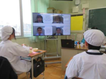 卒業献立の日の給食に合わせて、栄養教諭から1・2組それぞれの組にスライドのプレゼントがありました。
