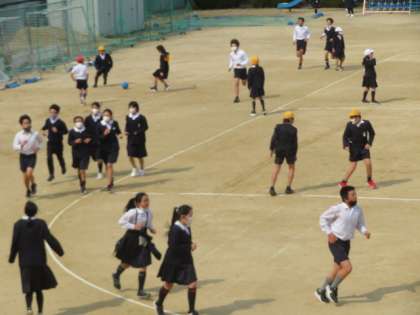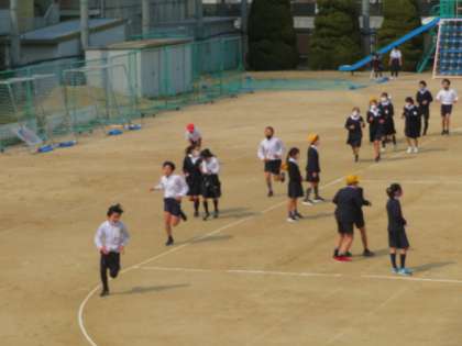 運動場も午前終わりから使用できるようになり、昼休みの時間には6年生が目標達成に向けて運動場のトラックコースを走っていました。