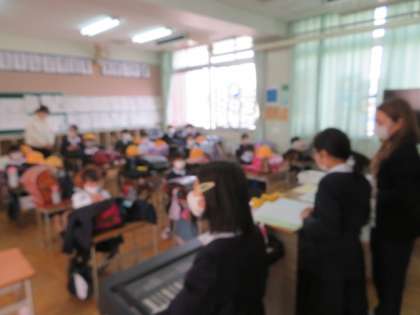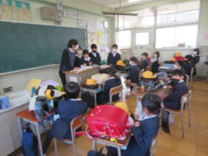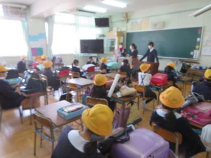 各教室に分かれて、集団登校班別の地域子ども会を行いました。