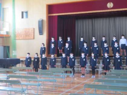 卒業式に向けて、証書授与の方法や呼びかけ、歌唱などの立つ位置などを確認したりしていました。