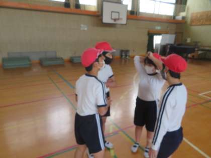 ゲームの合間には、作戦会議をしたりして、ゲームを通してバスケットボールゲームの楽しさを味わっていました。