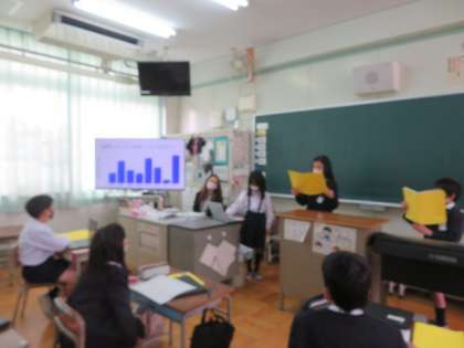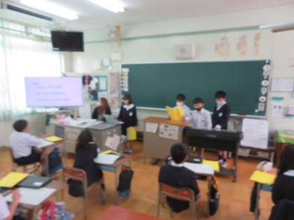 「調べたことを発表しよう」ということで、6つのグループがそれぞれにテーマを持って調べたことをまとめて発表しました。