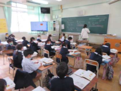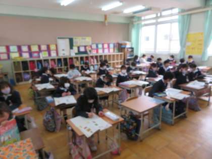 「たしざんやひきざんをつかって」で、文章問題をみんなで考えながら解いていました。