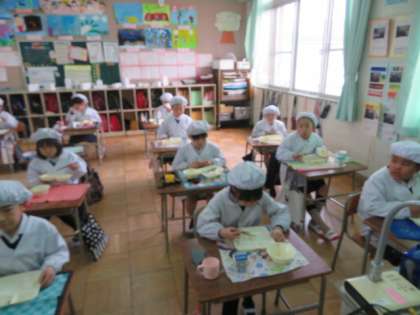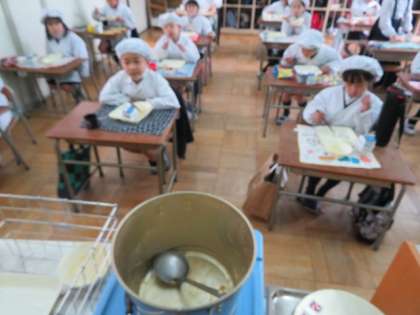 3/7 月 給食の時間 2年1組 給食の様子